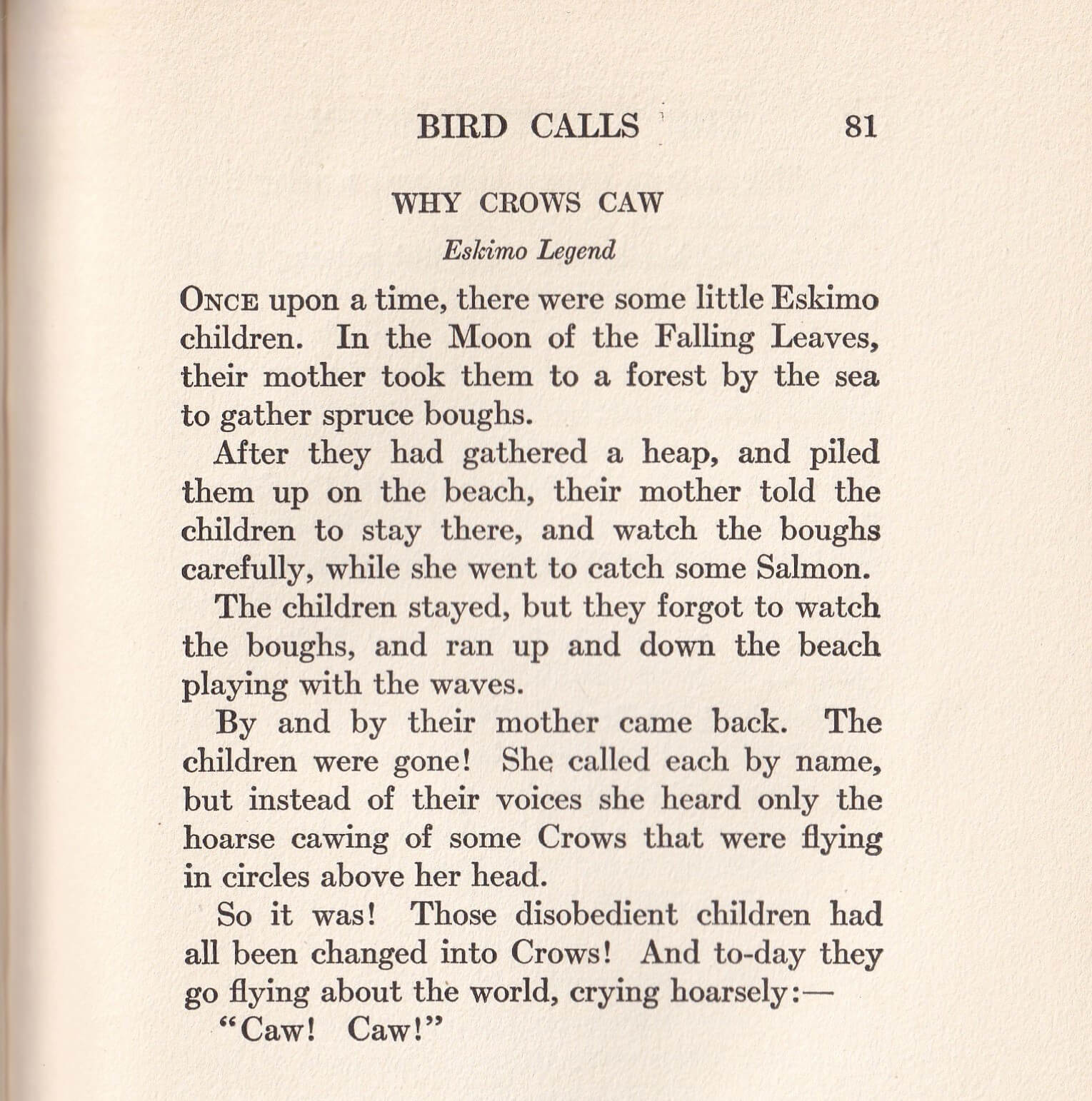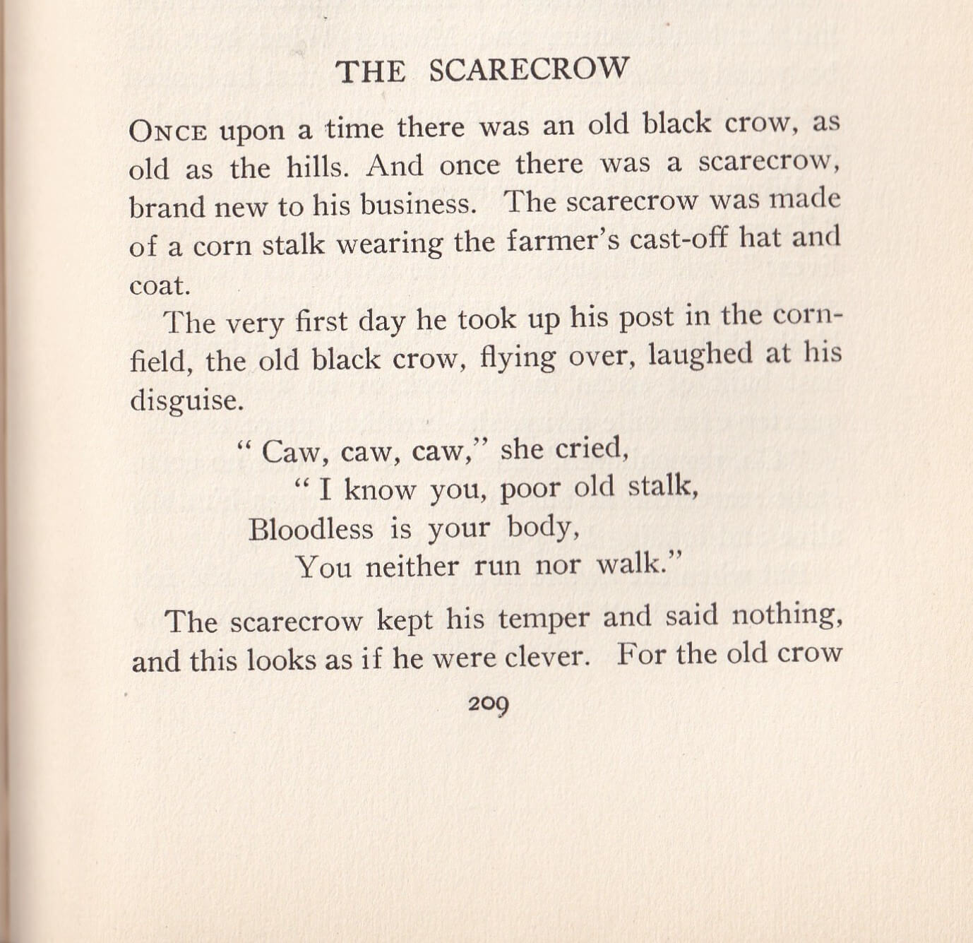 All of this made me search for stories about crows – there’s a LOT! and I even found one about a scarecrow. First come crows and then come scarecrows, so that’s the order I’ll show the stories, then give a way to find even more stories online about crows.