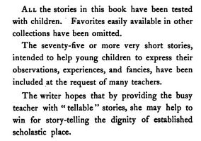 This next story is by Angela M. Keyes in her book,Stories and Story-telling, also from 1911. I found her book is online, but nothing about her online except the book says she was Head of the Department of English, Brooklyn Training School for Teachers and almost a quarter of the book is devoted to how to use stories with children. I love her preface: